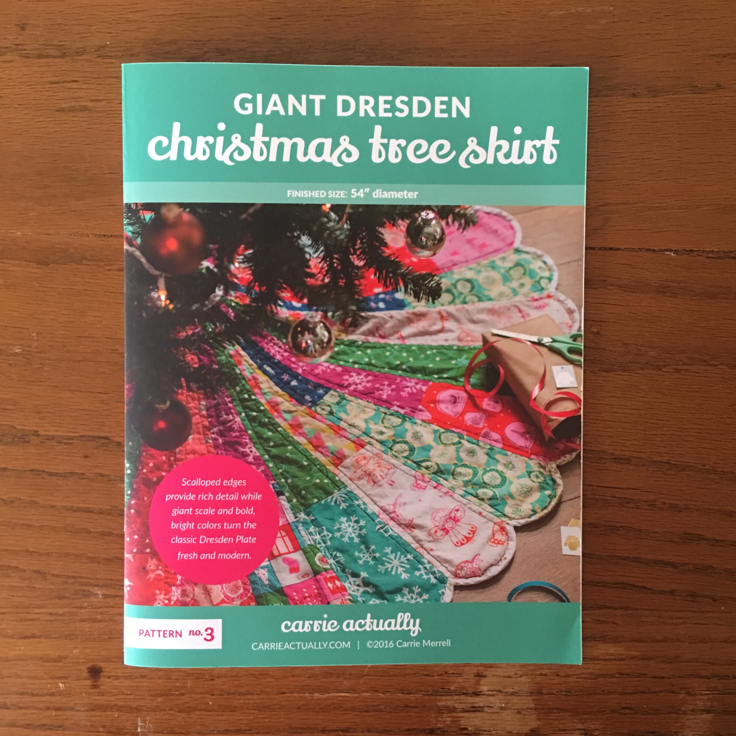 This week, I accomplished a mega goal I set for myself. I am pleased to announce that my first printed pattern is now available. The Giant Dresden Christmas Tree Skirt is available through Amazon.com.