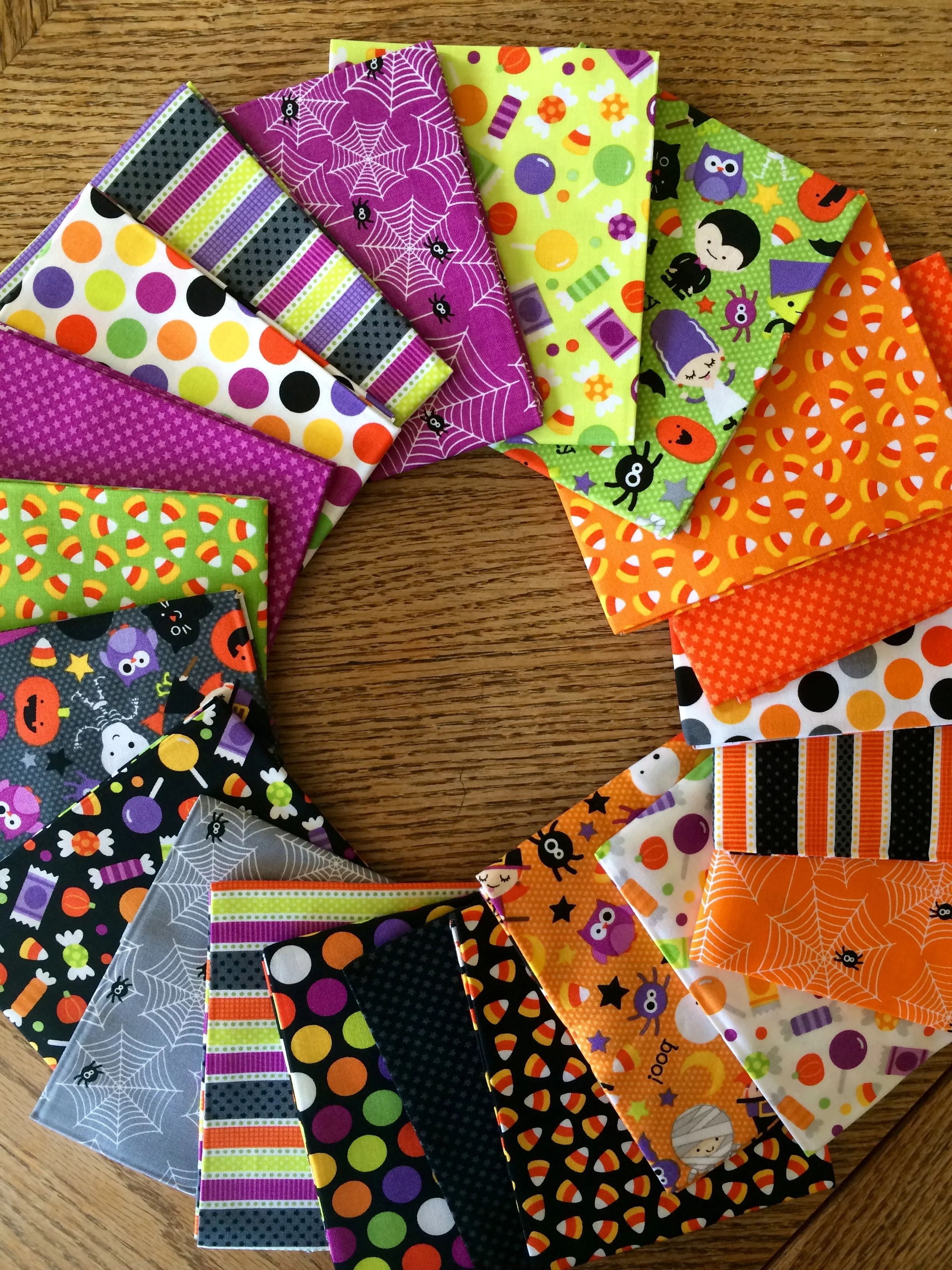 The fabric I bought was a fat quarter bundle called Halloween Town by Doodlebug Designs for Riley Blake. This exact bundle is no longer available but you can find some very similar options here.
